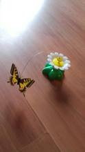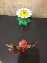 Rozmery: kvet – priemer cca 8 cm, výška cca 5, 5 cm, drôt cca 21 cm, motýľ – šírka cca 6 cm, vtáčik – šírka cca 10 cm