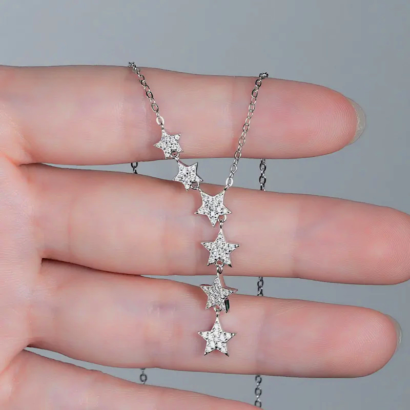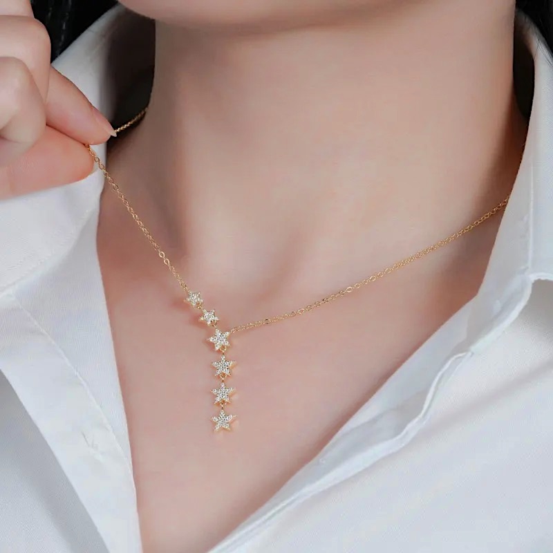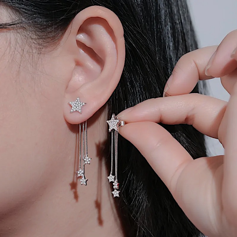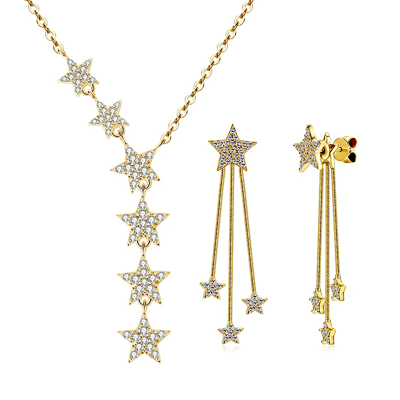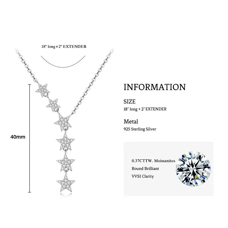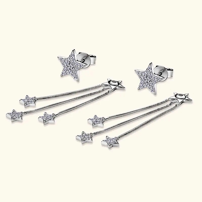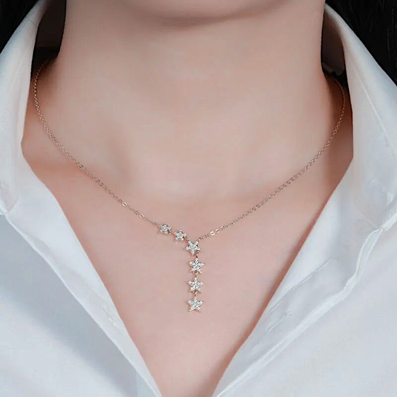 Jednoznačne vždy a všade zažiarite. Krásne trblietavý moissanit, ktorým sú posiate všetky strieborné hviezdy na náhrdelníku i náušniciach je skutočne na nerozoznanie priam od rovnako trblietavých diamantov. Moissanit je určite tým jedinečným diamantom pre nás.