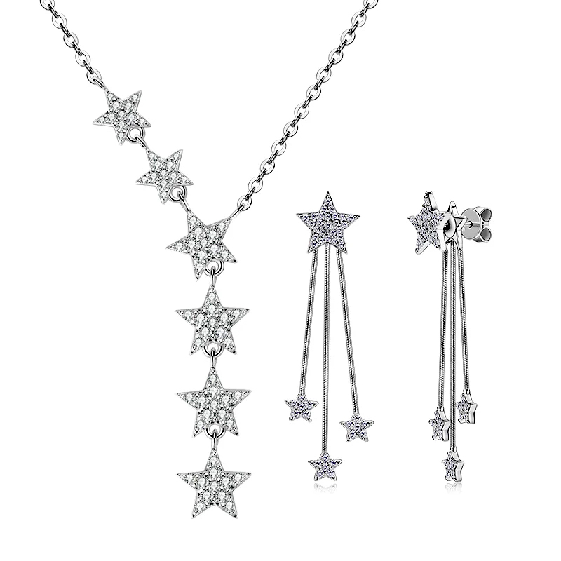 –POPOKi– strieborná súprava šperkov HVIEZDA moissanite – náhrdelník, náušnice