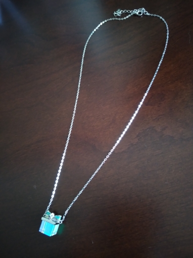 The quality is visible immediately. Very refined and interesting decoration, the gift has a white-pink-green-blue color. Elegant necklace. Nicely wrapped. Beautiful jewelry. THANK YOU.