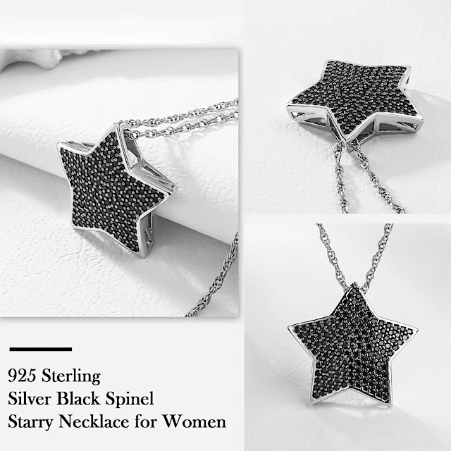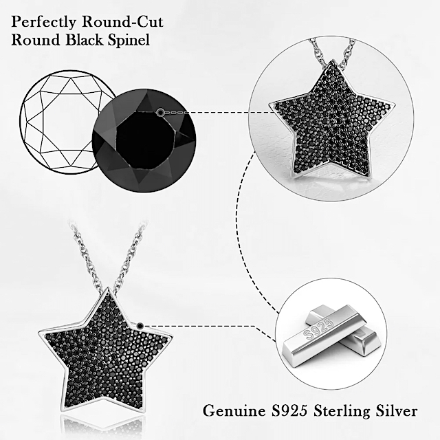 Nadčasová elegancia strieborného náhrdelníka HVIEZDA je presne taká akú hľadáte. Príjemný dizajn, nádherný čierny pravý prírodný spinel a tajomná hviezda… presne taká aká ste vy či aká je práve tá vaša dcéra, láska, priateľka, kamarátka…
