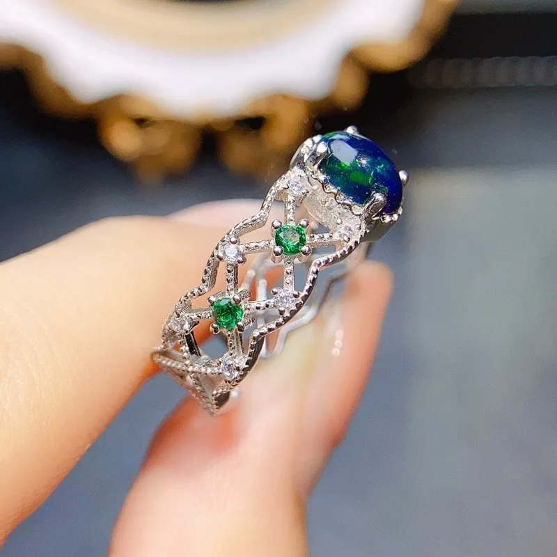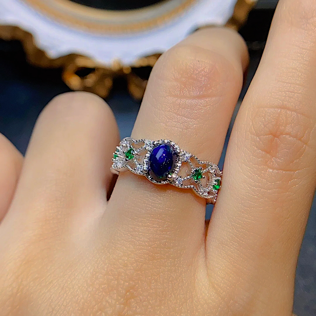 strieborný prsteň modrý opál prírodný