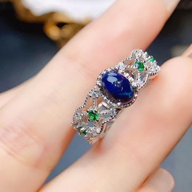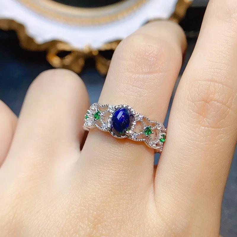 strieborný prsteň modrý opál prírodný pravý natural