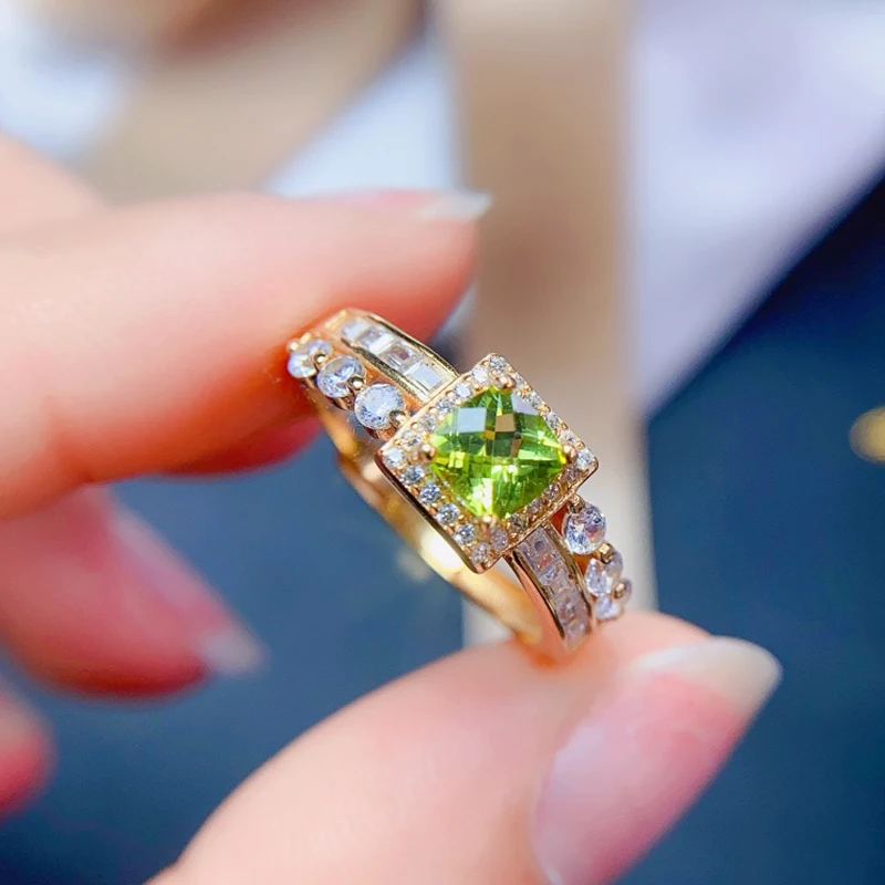 Elegantný a príjemne ženský…  Tento originálny strieborný prsteň s pravým prírodným kameňom OLIVÍN (5x5mm) je tu práve pre vás. Olivín je známy svojim nezameniteľným zelenkavým odtieňom s príjemnou pozitívnou energiou.