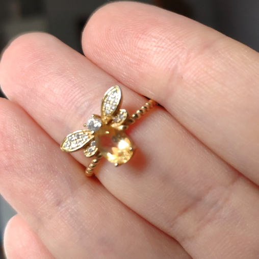 Pozlátený strieborný prsteň VČELA & CITRÍN. Má nielen veľmi peknú farbu ale i netradičný, unikátny dizajn.