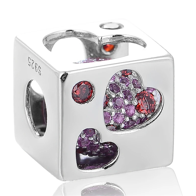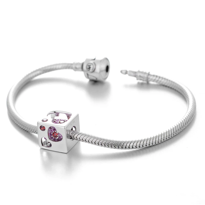 1x 2v1 Strieborná korálka SRDCE Pandora štýl KOCKA DIY (bez náramku, bez retiazky, bez náhrdelníka, len korálka, len prívesok)