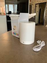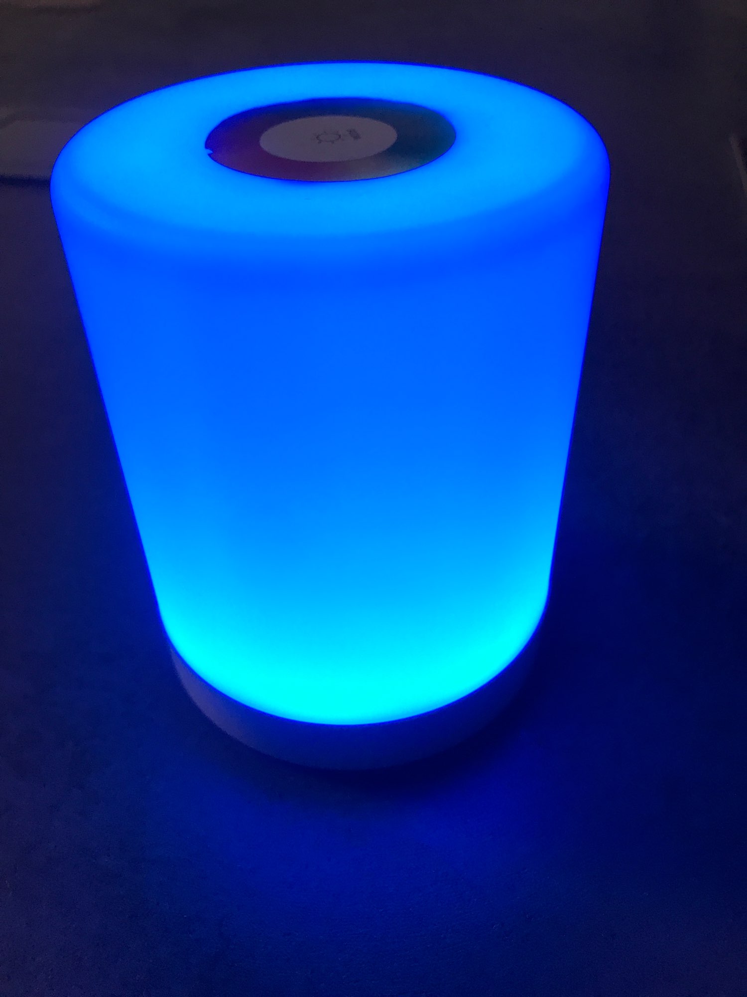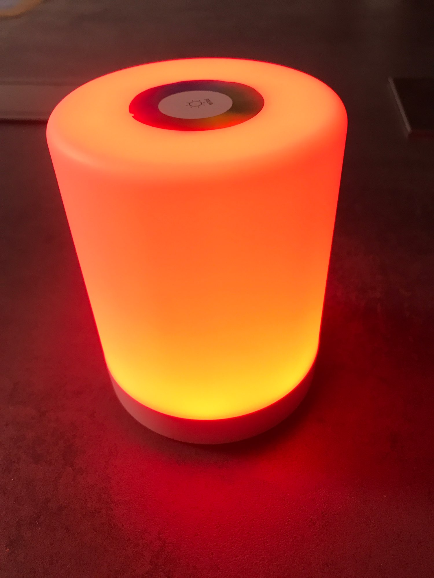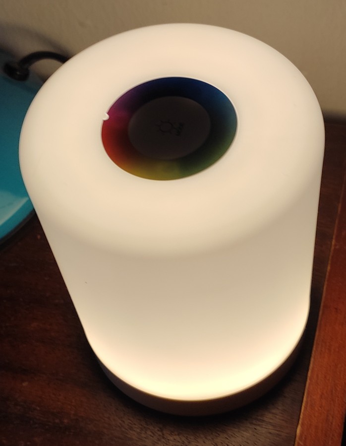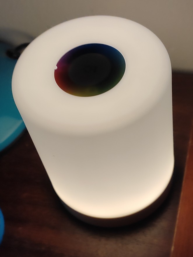 The lamp works perfectly and very beautifully. The lamp is light and the colors are nice. The lamp will remember the color and intensity that you last turned on. I am satisfied.