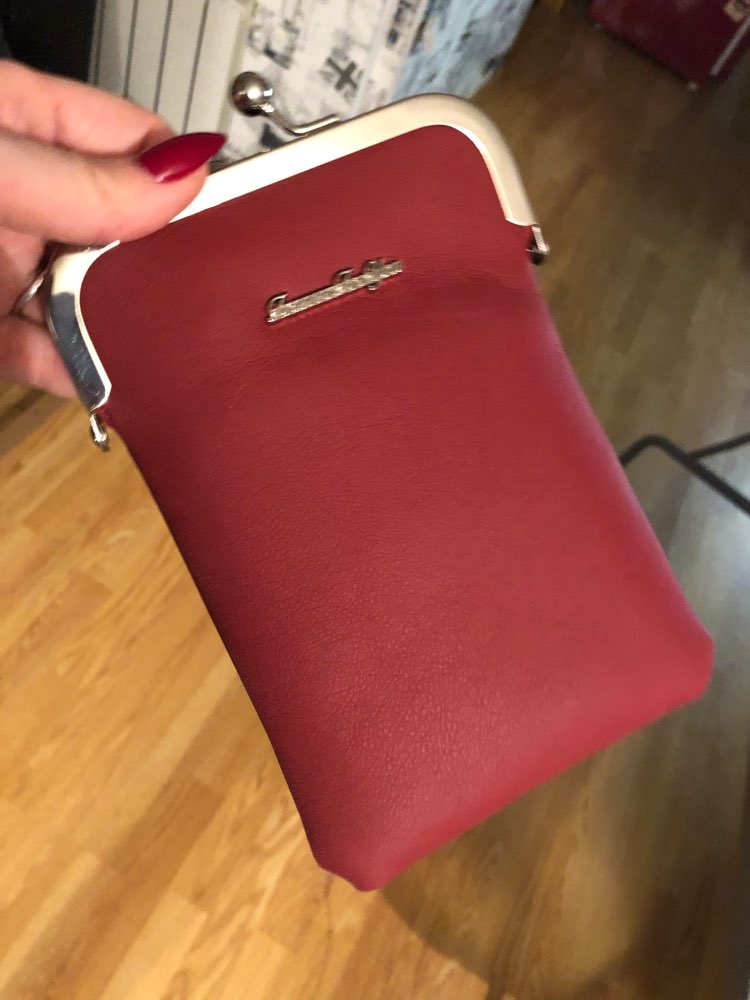 Very cool. Color as in the photo, soft leather, 2 compartments on the lock and on the clasp, where the castle is still small about the division for the card. Long Strap, adjustable. Recommend