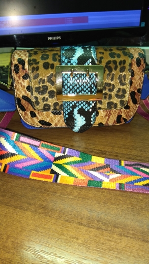 Mám pre vás peknú malú kabelku cez plece s dnes tak moderným farebným širokým popruhom, skvelou imitáciou hadej kože, zaujme a zapáči sa vari naozaj každej.