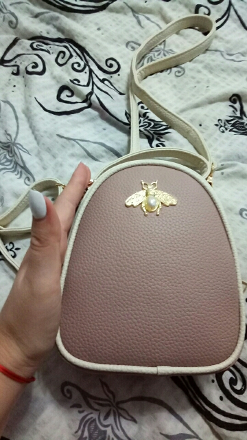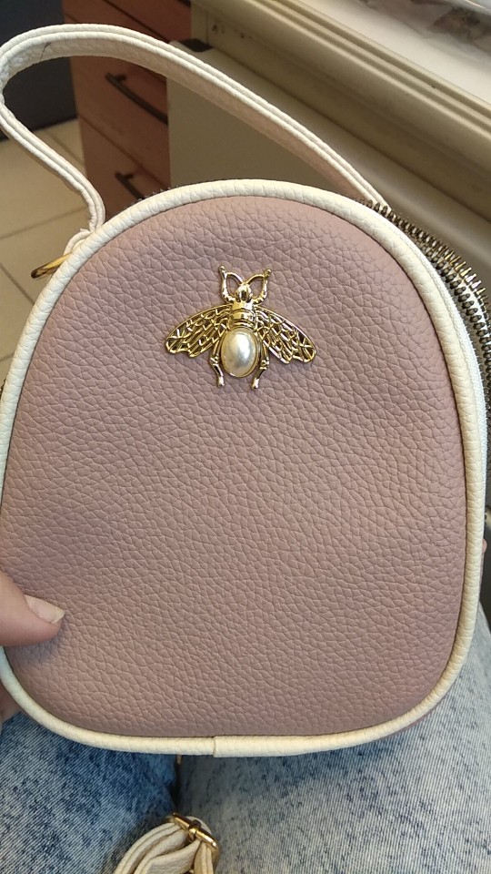 Nice handbag, elegant lines. Well made. The zipper is also good. The bee is firmly stuck. Long strap and comfortable handle. A normal, miniature handbag. I liked it. Well thank you.