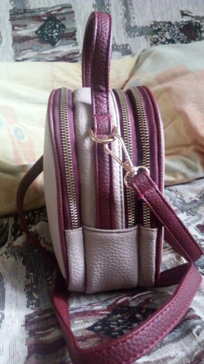 Unobtrusive small handbag. There are 3 counters with a telephone, wallet, keys. Looks stylish. Suitable for a slim girl for those stronger women will look too small. Fast delivery, good packaging. The seller is great. I recommend the product and the seller.